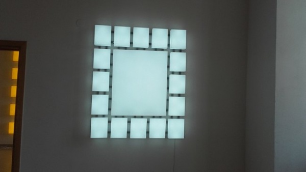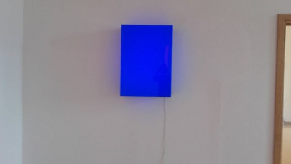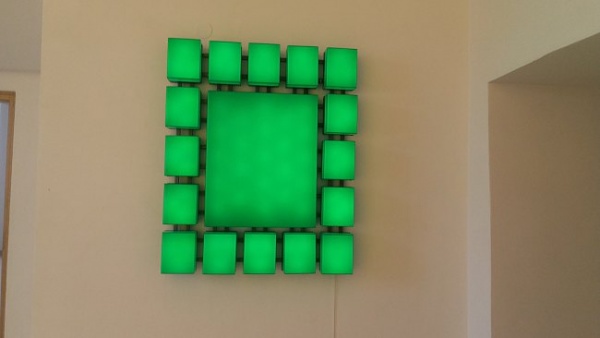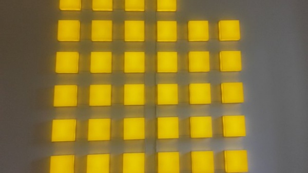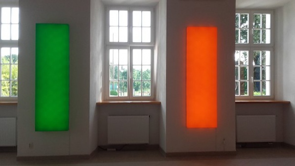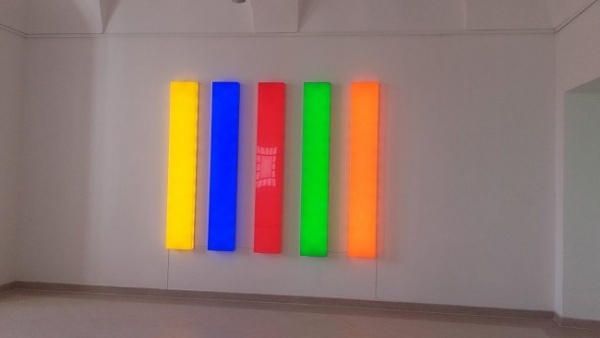 Stoimy na przestrzennej instalacji, która jest dziełem Leona Tarasewicza.