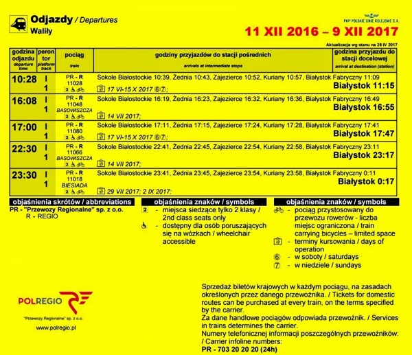 | Autor: | Rozkład jazdy pociągów Białystok - Waliły 2017 | |