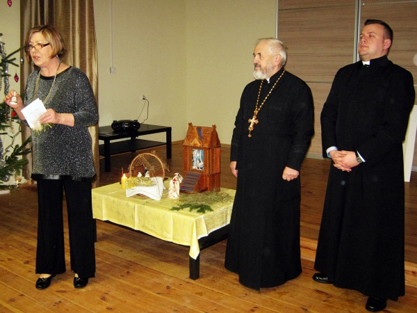 | Treść: | Świąteczne spotkanie czyli rozmowy przy stole w SOKOLEMW dniu 28.XII. 2014 r. w Domu Ludowym odbyło się świąteczne spotkanie mieszkańców wsi Sokole z udziałem ks. Jana Jaroszuka, proboszcza parafii prawosławnej i ks. Pawła Saucia, wikarego parafii rzymsko - katolickiej w Michałowie oraz Burmistrza Miasta Michałowa Włodzimierza Konończuka z małżonką Ewą. Kolędowano z gwiazdą, koncertował duet gitarowo skrzypcowy, śpiewano kolędy katolickie i prawosławne. Dzielono się opłatkiem i prosforą, wspominano wigilijne zwyczaje. Fot. Andrzej Kasperowicz