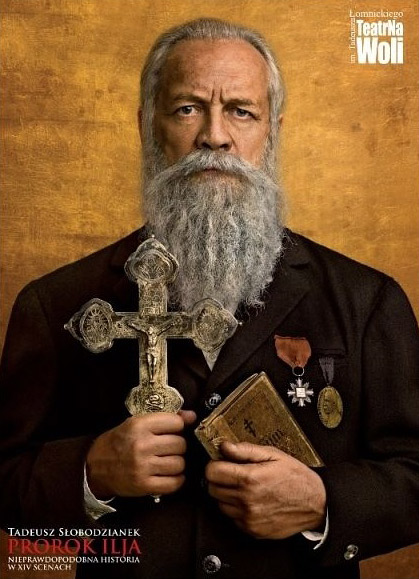 Plakat do sztuki "Prorok Ilja" wystawianej w Teatrze na Woli w Warszawie. W roli tytułowej wystąpił Andrzej Seweryn. | |