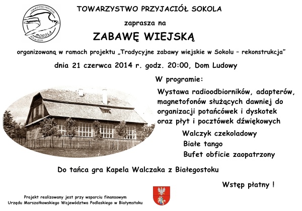 | Treść: | W imieniu Towarzystwa Przyjaciół Sokola zapraszam w najbliższą sobotę, 21.06.br. na zabawę wiejską.