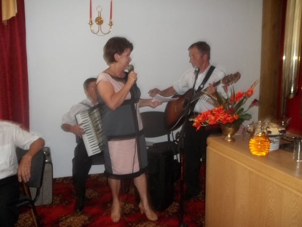 Uroczystość umilali dwaj członkowie z kapeli " Chutar". Zaśpiewali jubilatom 100 lat i Mnogije Leta. Potem były inne piosenki w języku białoruskim i polskim.