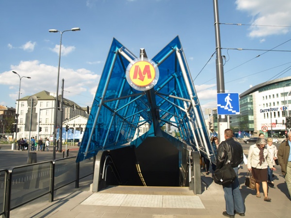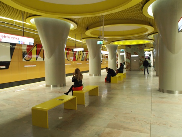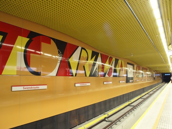 Do stacji Świętokrzyska prowadzi długa "rura". Stacja ta znajduję się poniżej stacji pierwszej linii. Tu obie linie krzyżują się.