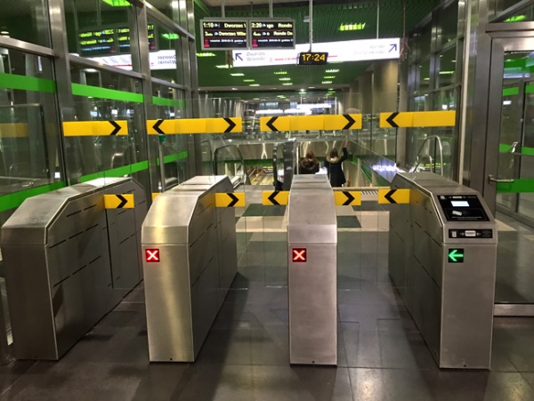 Nowy typ bramek ze szklanymi drzwiami. W pierwszej linii metra są inne, można przez nie przeskoczyć.