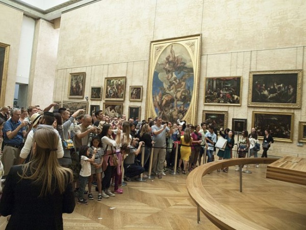 Luwr - ten tłum fotografuje najsłynniejszy obraz tego muzeum - Monę Lizę.