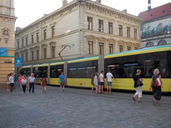 W mieście jest jeden nowoczesny tramwaj, wyprodukowany we Lwowie. Ludzie przeważnie po mieście jeżdżą małymi busikami, oczywiście są to stare rzęchy.