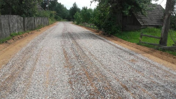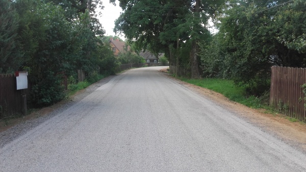 | Treść: | Teraz droga przez wieś wygląda tak jak na załączonym zdjęciu. Niby jest skończona, ale nie wygląda tak jak by mieszkańcy chcieli. Kamyki leżą luzem, lecą spod kół jadących pojazdów na różne strony. Pobocza zrobione byle jak ( a może w ogóle jeszcze nie zrobione, kto to wie!) Jeszcze będziemy tęsknić za naszym brukiem!.