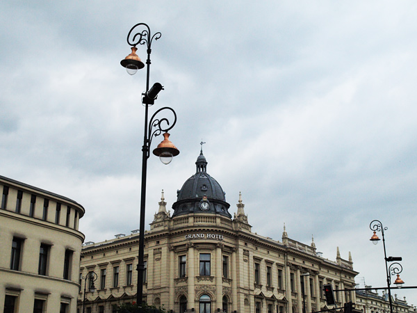 Odrestaurowany budynek Grand Hotelu przy głównej ulicy miasta.
