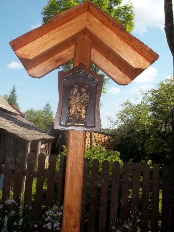 | Treść: | Idąc przez wieś zauważyłam małą ogrodową kapliczkę z wizerunkiem Św. Rodziny. Stoi ona w ogrodzie u Lusi. Od ludzi wiem, że miała być dzisiaj poświęcona.