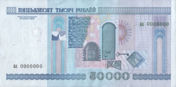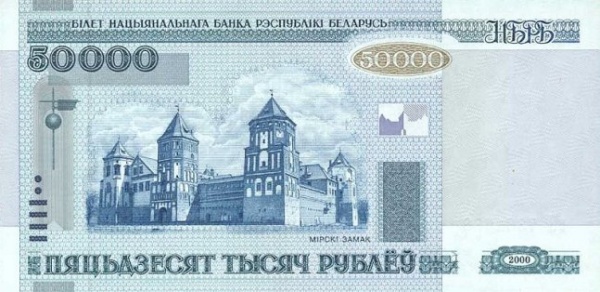 Pałac w Nieświeżu na banknocie 100 000 rubli.