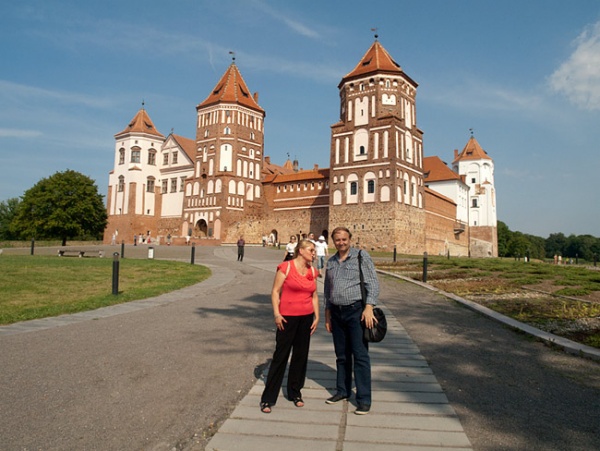 Pałac ten jest umieszczony na liście światowego dziedzictwa UNESCO. Zwiedzanie rozpoczęliśmy od kościoła pw. Bożego Ciała, zbudowany w latach 1587 - 1603, pierwszej budowli barokowej w Polsce. W piwnicach mieści się krypla zawierająca 102 trumny z ciałami Radziwiłłów. Część trumien została otwarta po śmierci Lenina, kiedy radzieccy naukowcy poszukiwali metod mumifikacji ciał. Z kościoła przeszliśmy do Pałacu, który jest jednym wielkim muzeum. Przed portretem księcia Janusza Radziwiłła dowiedzieliśmy się, że w słynnej scenie z Potopu, kiedy umierał on na zamku w Tykocinie, naprawdę miał 43 lata, a w filmie grał go już wiekowy Władysław Hańcza. Po kilkugodzinnym zwiedzaniu pałacu zrobiliśmy jeszcze spacer po parku i pojechaliśmy do zamku w Mirze. Zamek ten przez 300 lat również należał do rodziny Radziwiłłów i jest też umieszczony na liście światowego dziedzictwa UNESCO. Zapraszam do fotogalerii i do obejrzenia krótkiego filmu: http://www.youtube.com/watch?v=uGwpDNWRYtQ